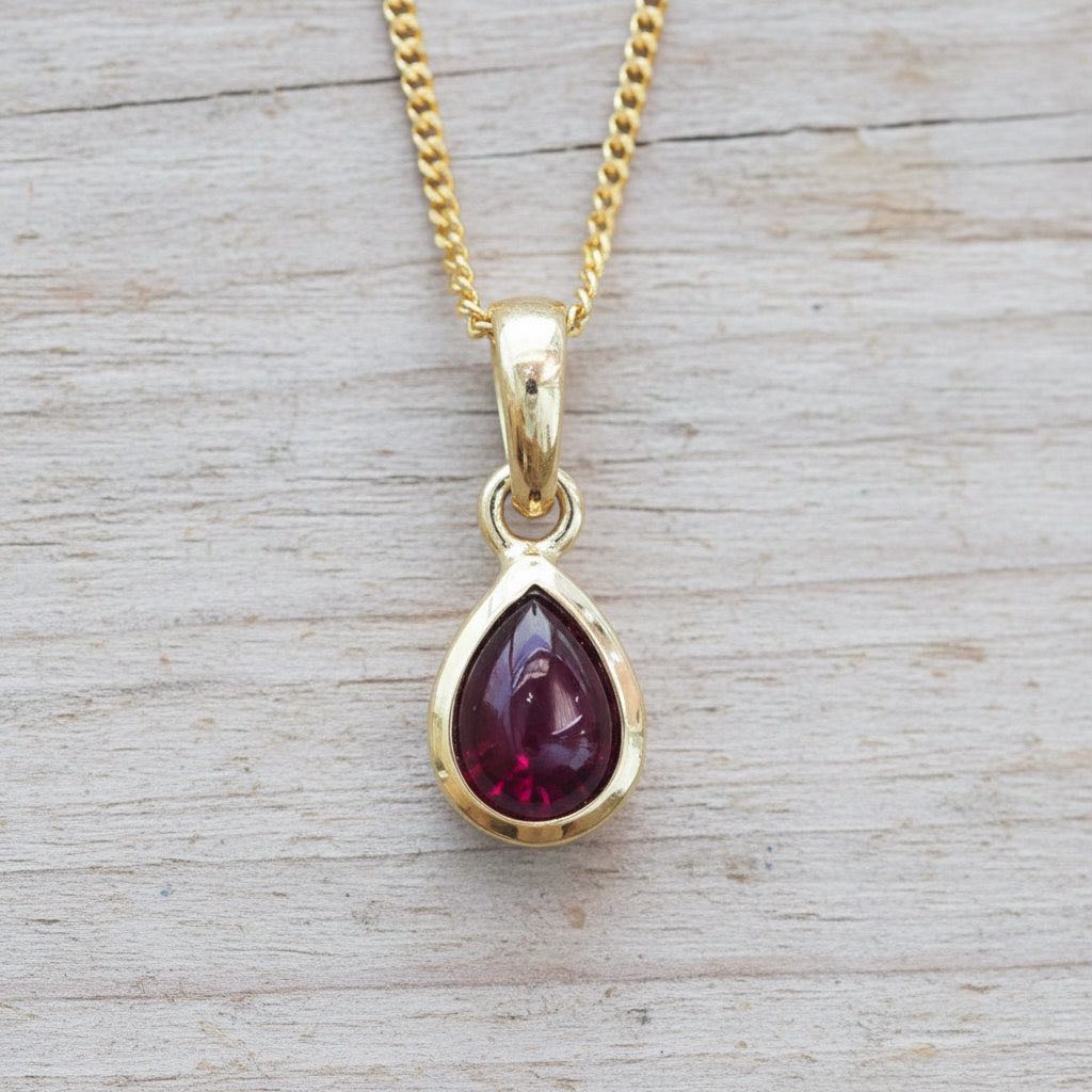 Our July Birthstone Ruby Necklace is a stunning symbol of passion and vitality, available in Silver, Gold, and warm Rose Gold.
