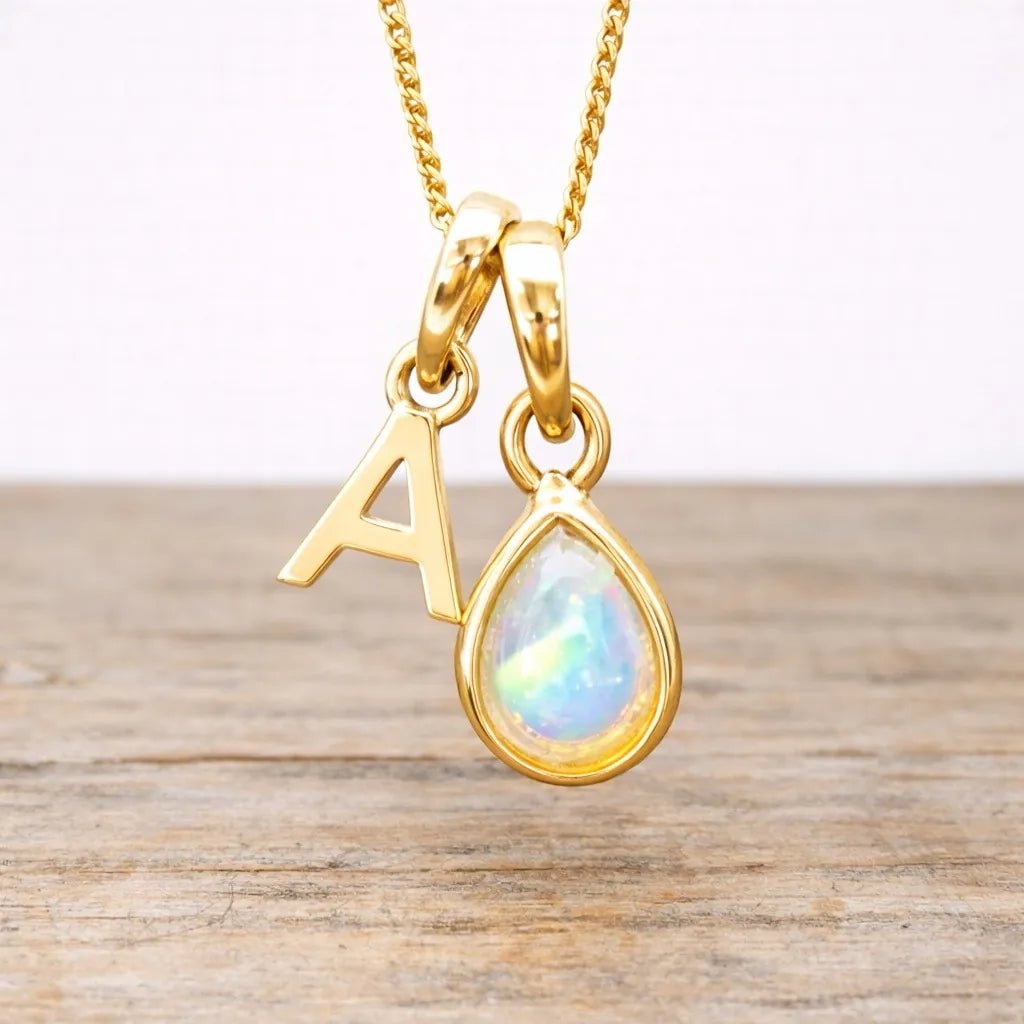 Celebrate the special moments in life with our exquisite Gold Initial and October Birthstone Opal Necklace: the perfect meaningful gift for family, friends, partners, and children alike.
