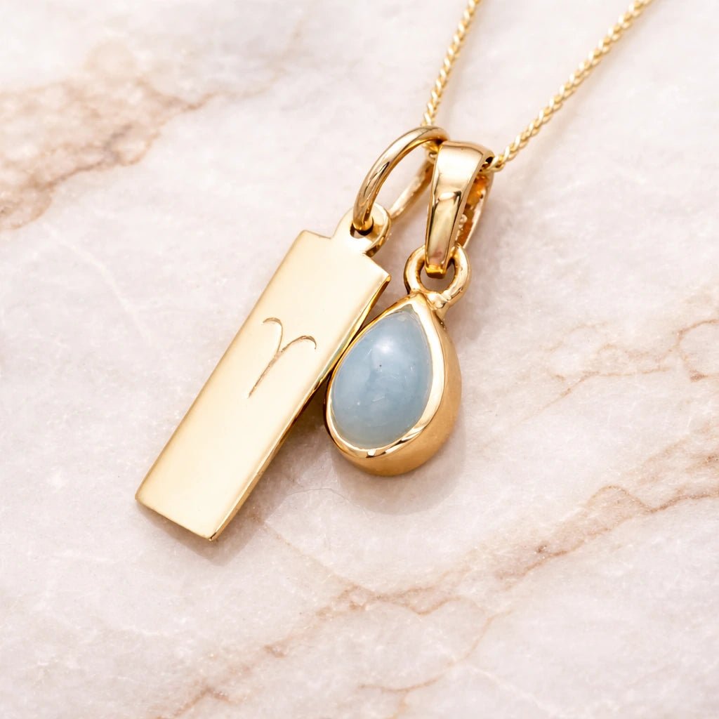 Combining the Aries zodiac symbol with the March birthstone Aquamarine brings together two elements of identity: astrological symbolism and birthstone tradition. The pairing creates a piece of jewellery that reflects both personal character and birth month connection.