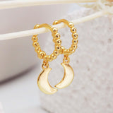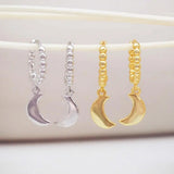 Indie and Harper’s Dainty Crescent Moon Hoop Earrings feature delicate crescent moon charms set on Sterling Silver or Gold-plated hoops, ideal for everyday layering.