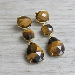 These drop earrings are crafted in 18k gold plated brass, featuring three natural Tigers Eye stones in a vertical drop design. Rich in colour and high-impact in style, they balance everyday wearability with a bold, statement finish.